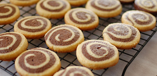 Hai màu nâu trắng xen kẽ giúp bánh quy Pinwheel Cookies trở nên đẹp mắt và hấp dẫn, là món bánh giáng sinh yêu thích ở rất nhiều quốc gia trên thế giới.